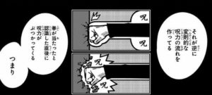 しかし通常術師は打撃と同時に呪力を流すので、遅れて呪力を流すことは意外と難しいのが特徴。そのため、131話時点で使用できた者は虎杖のみ。